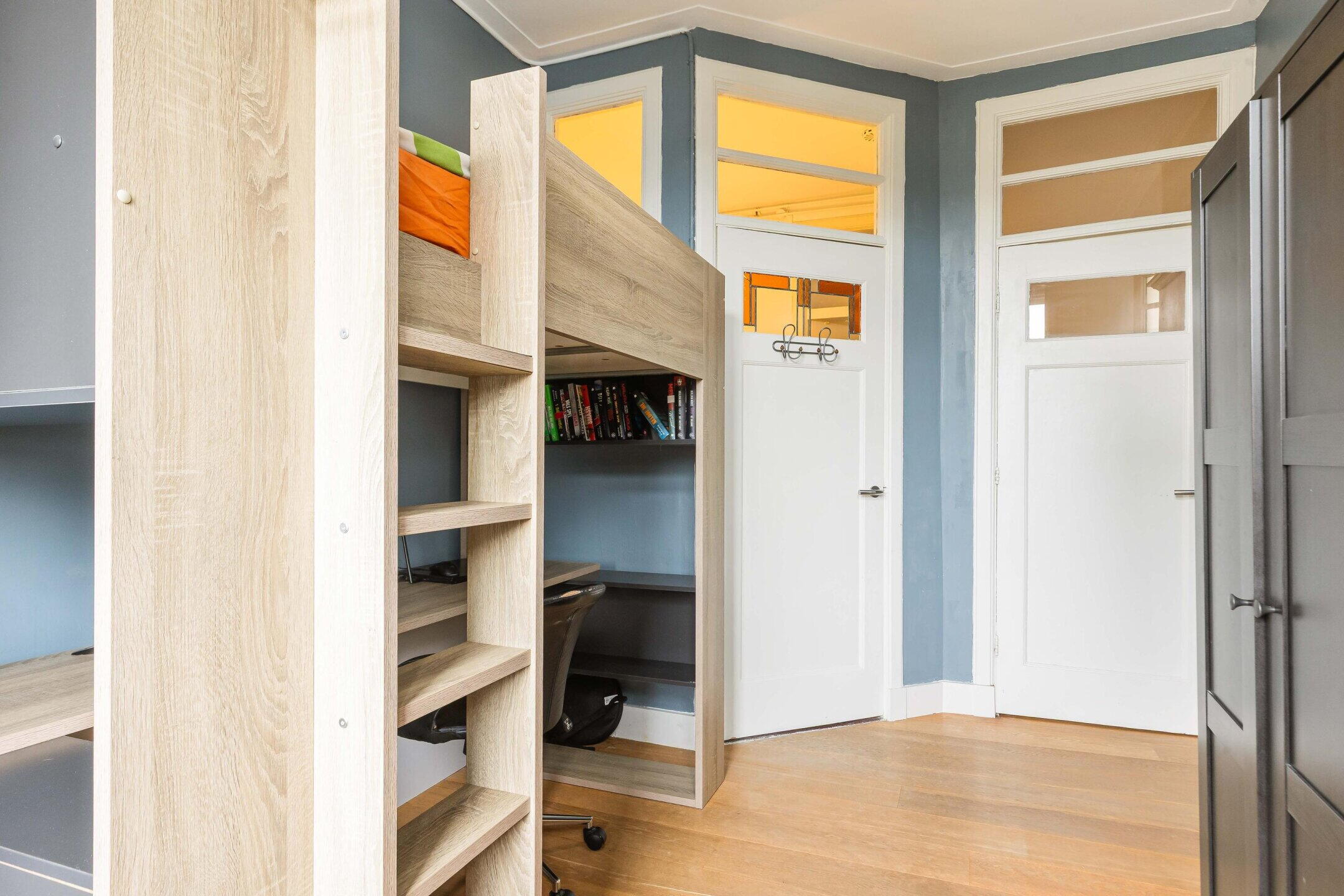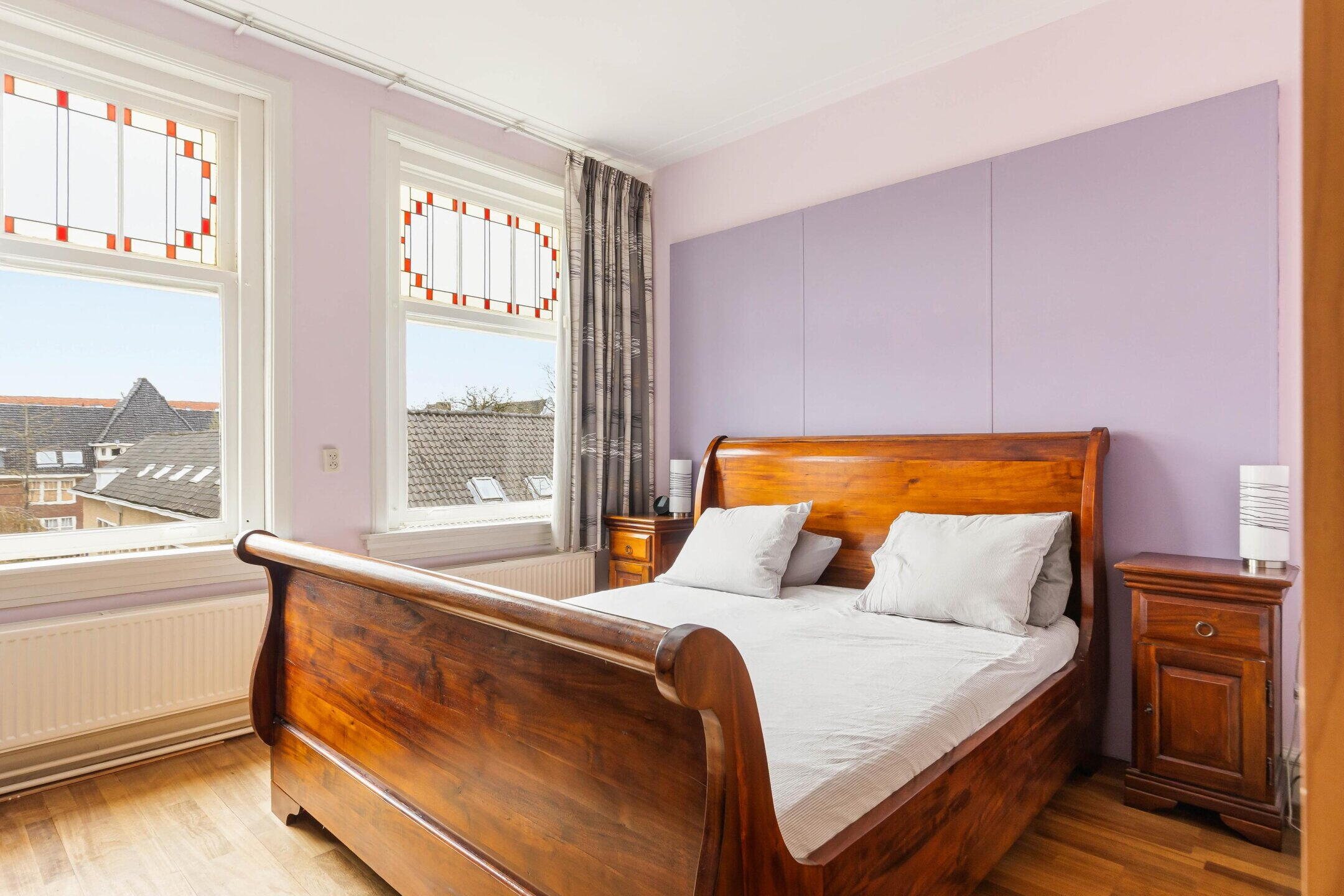 Het appartement beschikt over drie slaapkamers, waarvan één aan de achterzijde met toegang tot het balkon en de badkamer en twee (slaap)kamers aan de voorzijde, ideaal als slaap-, werk- of kinderkamer. De kleine kamer heeft directe toegang tot de inloopkast.